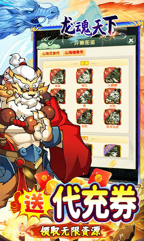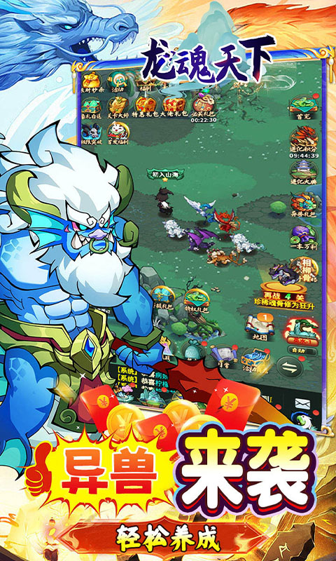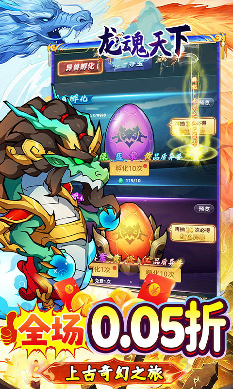 《龙魂天下(0.05折资源买断版)》是一款山海经风格的休闲养成类游戏。在游戏中您可获得众多异兽伙伴,自由搭配伙伴组成阵容,多等级异兽协助作战,进化你的最强异兽,去挑战游戏中的各类玩法,去探索更广阔的山海世界。