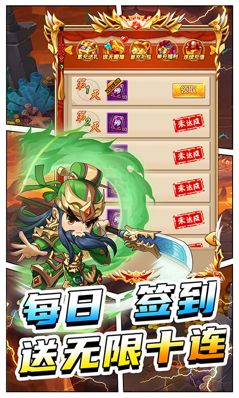 2.每日签到送无限十连,神将阵容随心搭配!